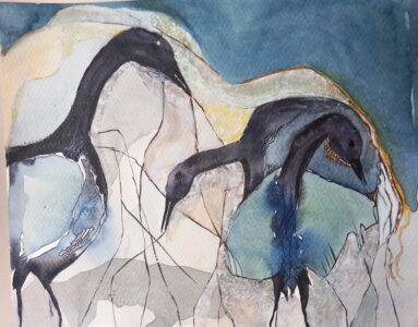 Min lärarbakgrund gör att jag gläder mig över, att dela med mig av mina senaste målningserfarenheter inom akvarell och torrpastell, till de besökare som är nyfikna på processen bakom verken.